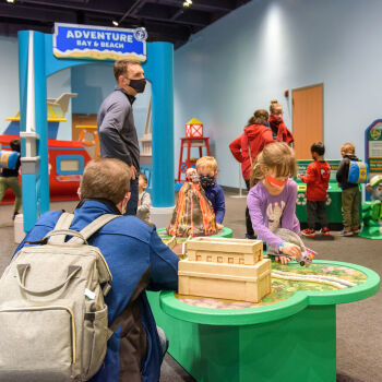 In the PAW Patrol: Adventure Play exhibition, you'll join the pups of PAW Patrol to answer every yelp for help! Enter the Lookout Tower where the pups live, guide the Sea Patroller through Adventure Bay and Beach, climb Jake’s Mountain, and drive the PAW Patroller.