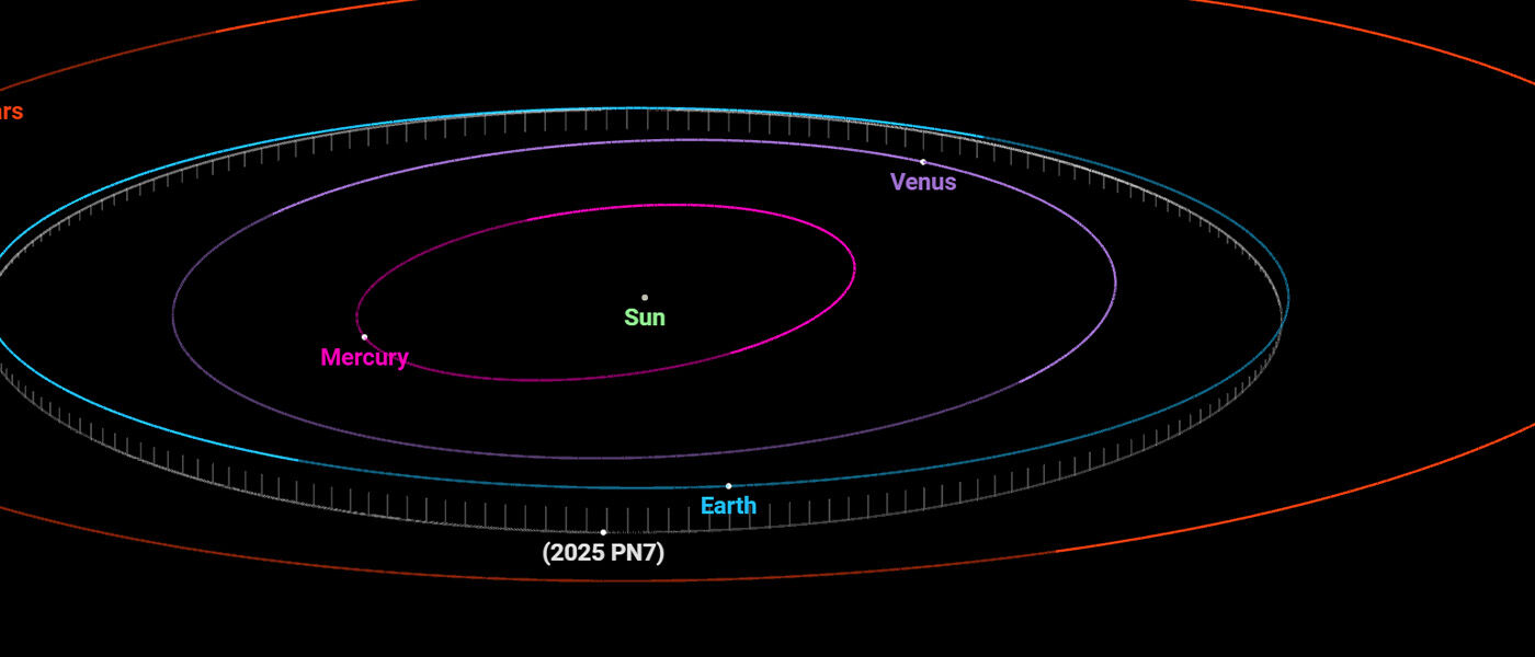 Orbit of 2025 PN7, shown on October 25, 2025. Image via NASA.