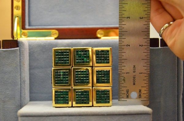 To celebrate the 15th anniversary of the invention of the Rubik’s Cube, Fred Cuellar of Diamond Cutters International crafted a Rubik’s Cube from diamonds, rubies, emeralds, amethyst, sapphire, and 18 karat yellow gold. The result was a priceless and beautiful work of art called The Masterpiece Cube.